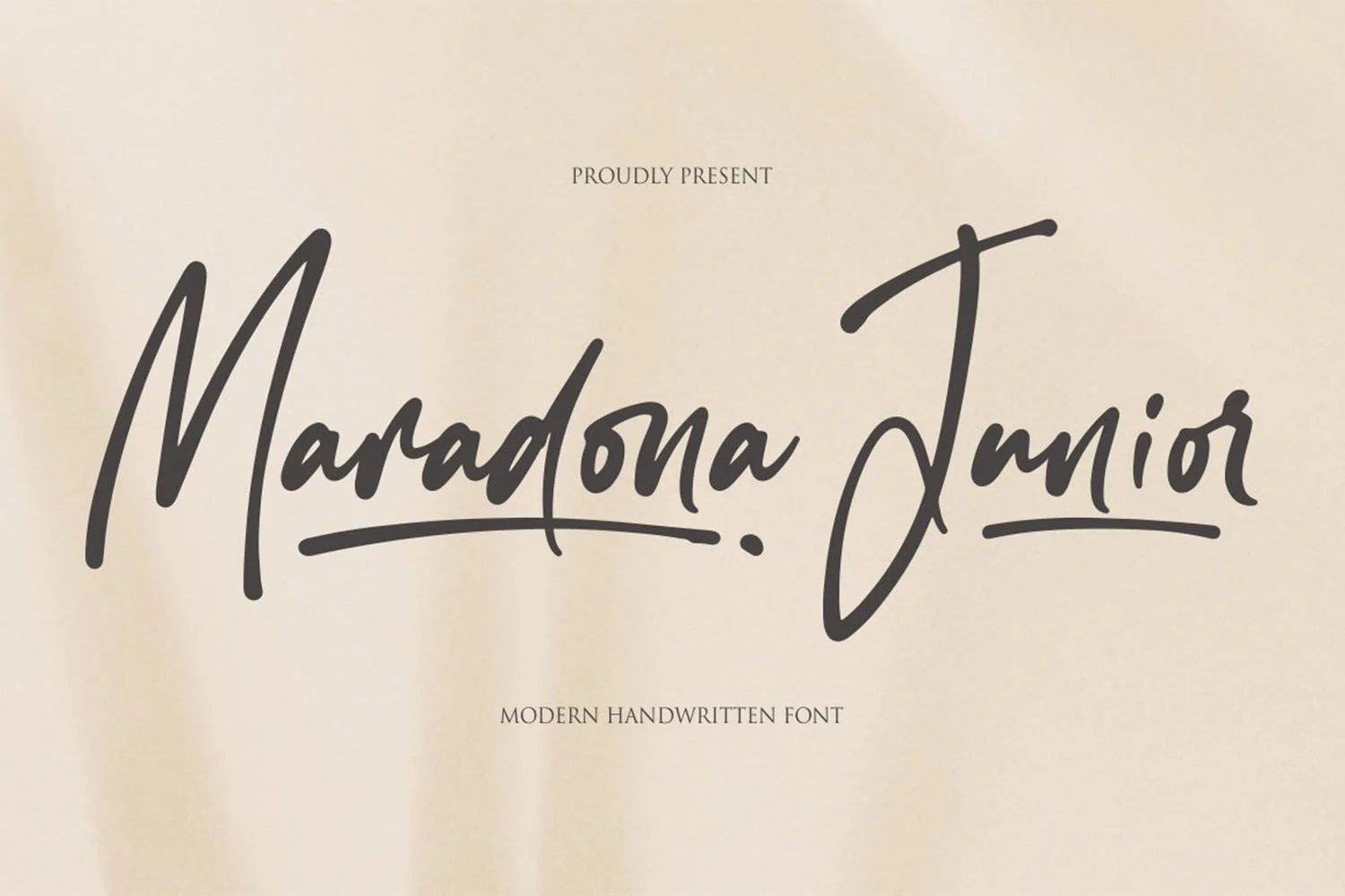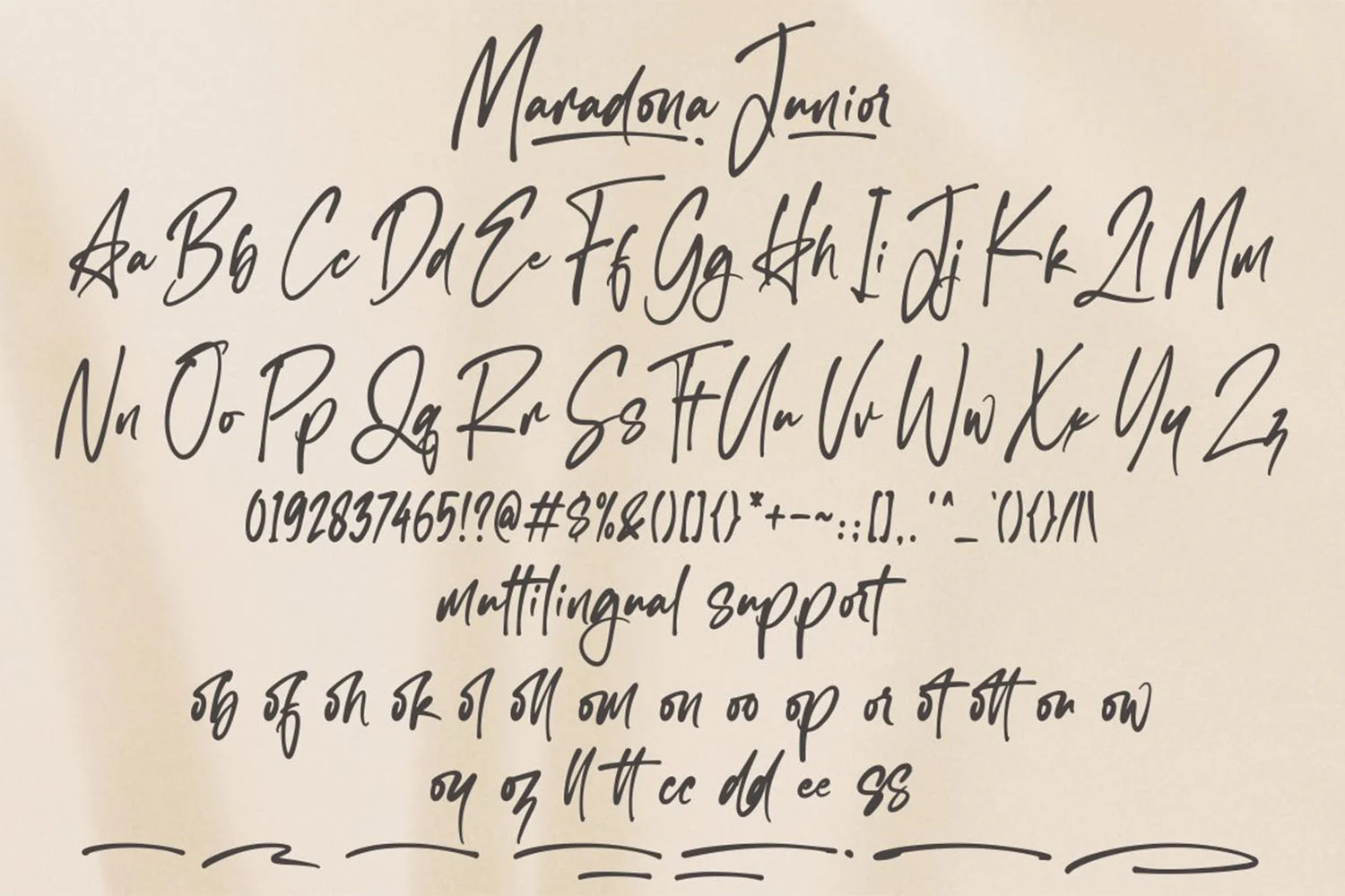 Maradona Junior a stylish signature font. It features ligatures characters that will take your projects to the next level!