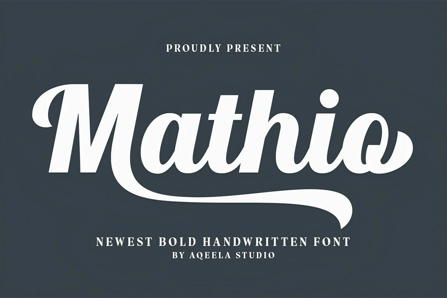 Mathio is a bold and expressive font that channels the energy of handwritten style. Its thick strokes and dynamic curves give it a confident and eye-catching presence, making it perfect for designs that demand attention. The font’s playful loops and swashes add a touch of personality, while its overall structure maintains a sense of legibility. Mathio is ideal for branding projects, headlines, and any application where you want to convey a sense of vibrancy and individuality.