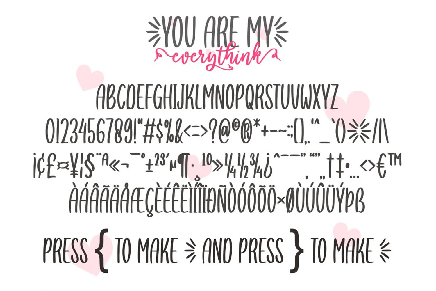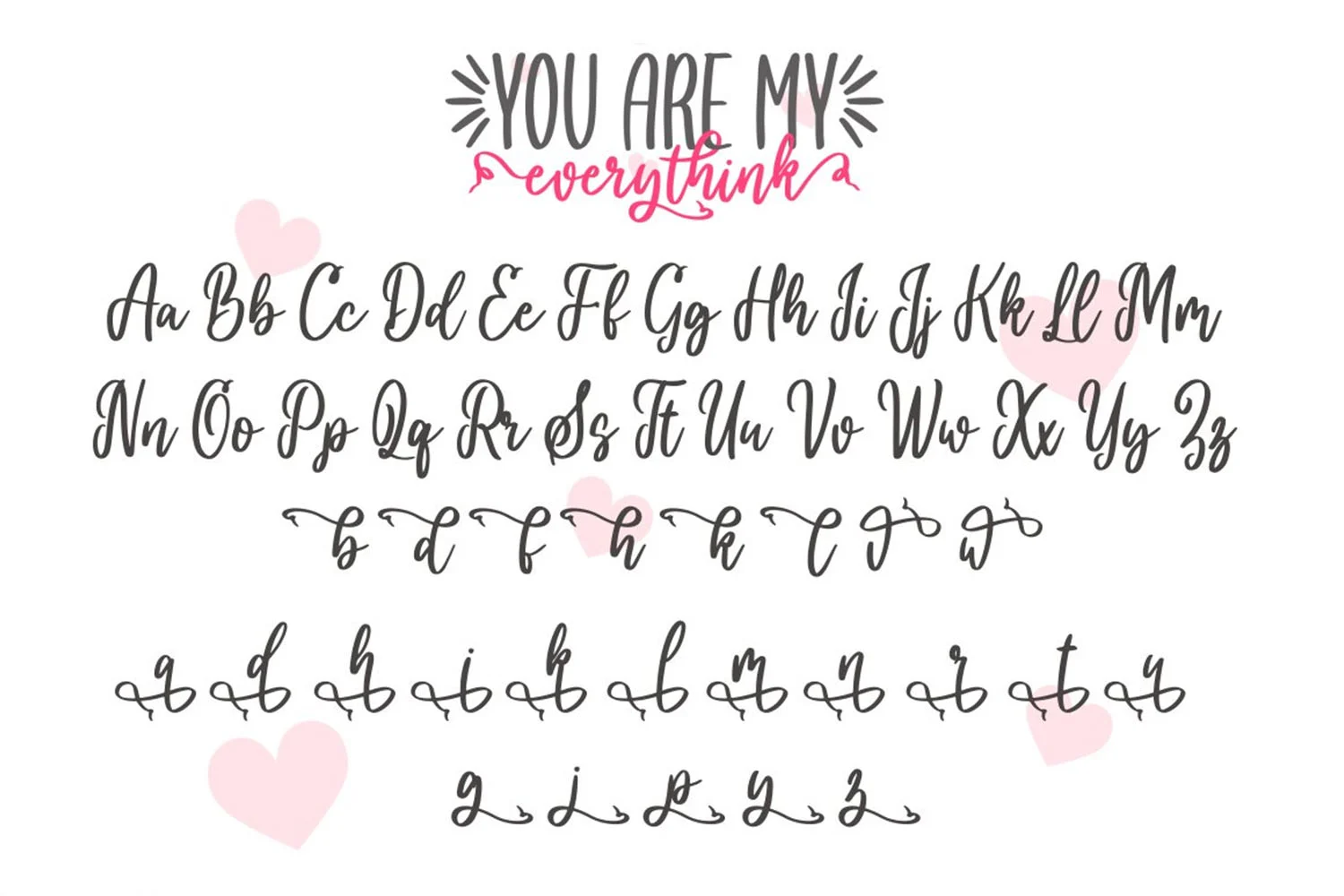 You are my everythink a font duo is a beautiful script font with beginning and ending swash and display font. It features characters that will take your projects to the next level!